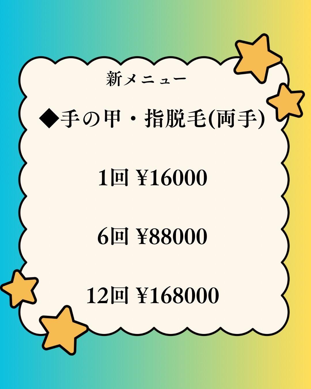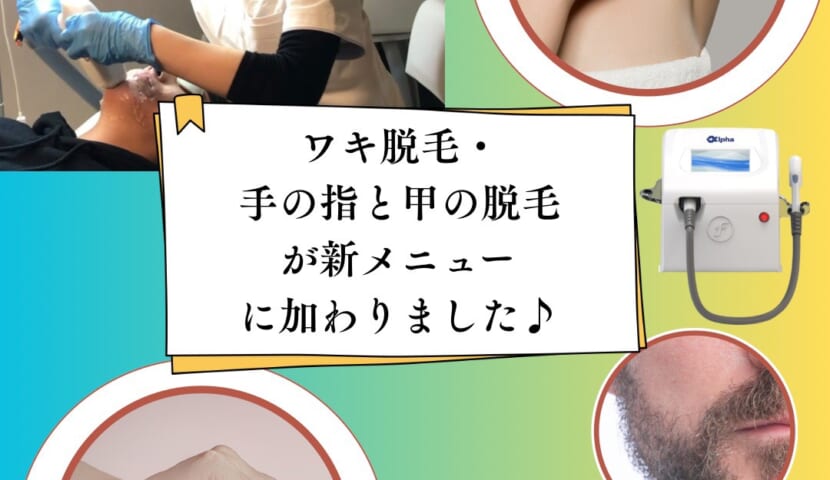 当院美容皮膚科の医療脱毛メニューに、新たに、ワキ脱毛て手脱毛(手の甲・指)が加わりました。